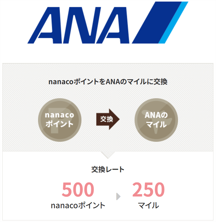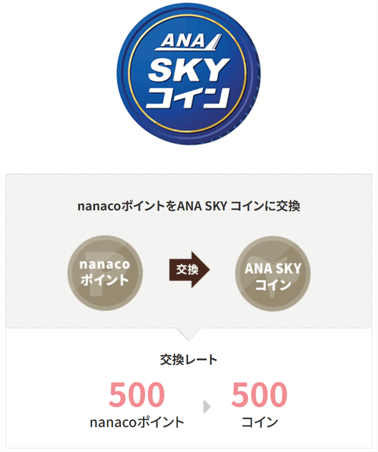 上記以外だとANAマイル、ANAのスカイコインへの交換ができるようになっています。