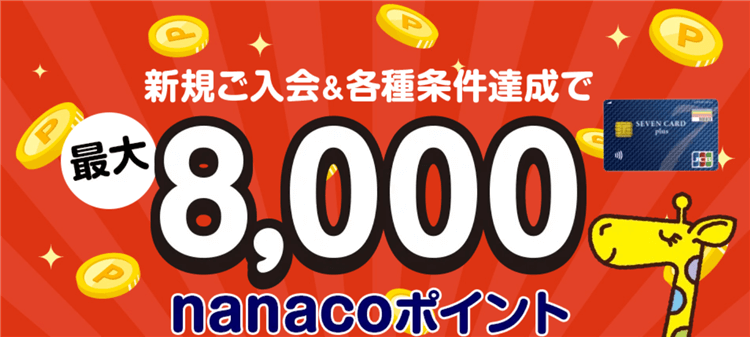 セブンカード・プラスのキャンペーンで最大8,000nanacoポイントが貰える!!