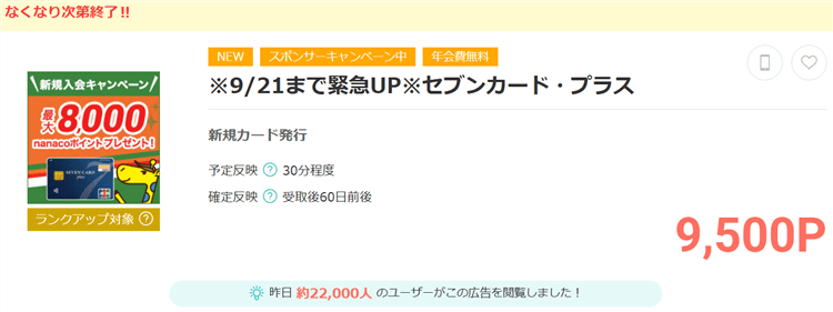 【限定】セブンカード・プラスが新規発行9,500Pで激アツ!更に最大8,000nanacoポイントが貰える!!