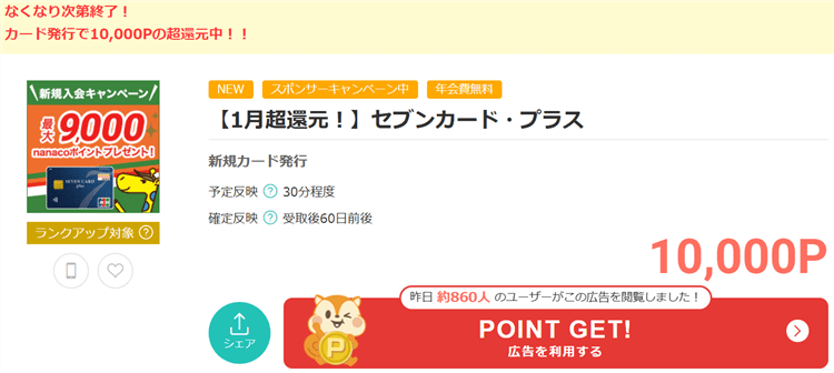 その後は、セブンカード・プラスのキャンペーンも忘れずに利用してくださいね!!
