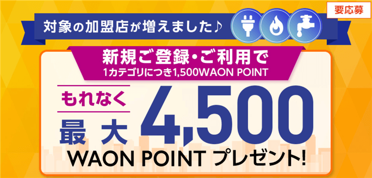 - 電気料金:1,500WAON POINT