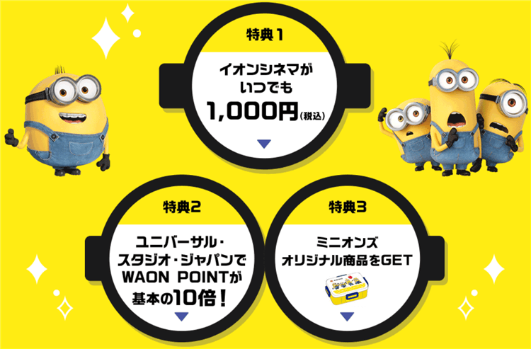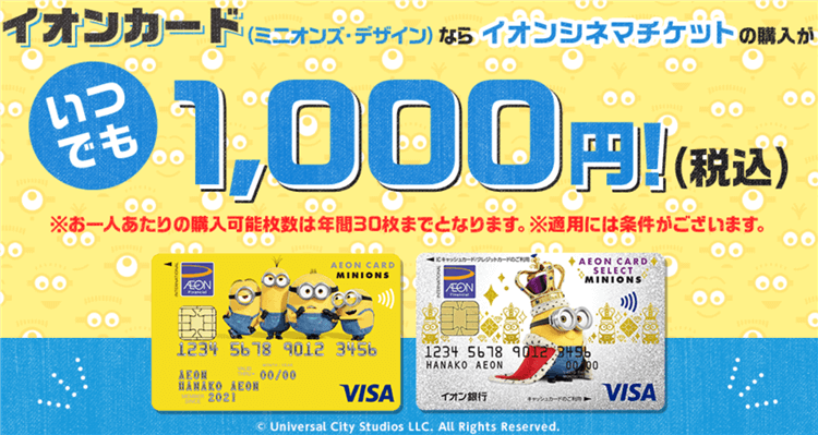 ミニオンズデザインカードは映画が1,000円で見れてUSJの利用でポイント10倍!