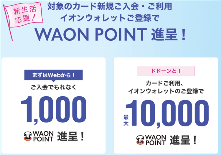 Webより新規ご入会で、もれなく1,000WAON POINT<イオンJMBカードは500マイル>