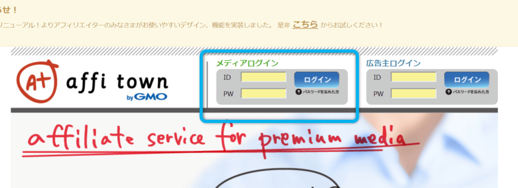 では早速アフィタウンにログインをしてみましょう。