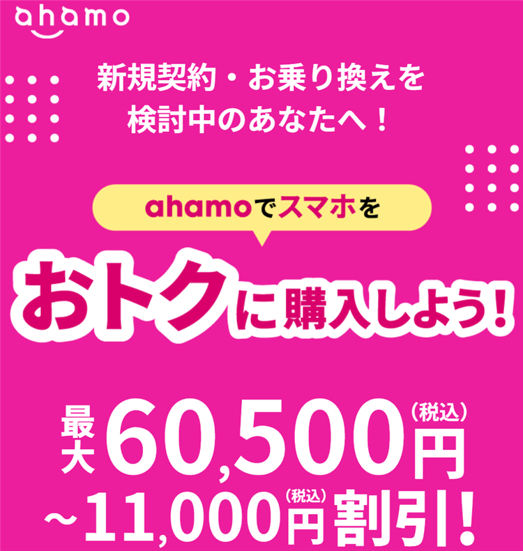 手順1:ahamoの「5G WELCOME割」で44,000円割引!!