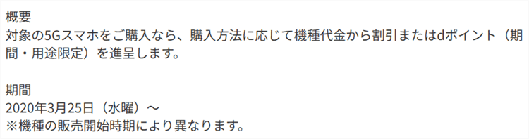 「5G WELCOME割」というもので最大60,500円~11,000円の端末値引もしくはdポイントが貰えるキャンペーンとなっていますよ。