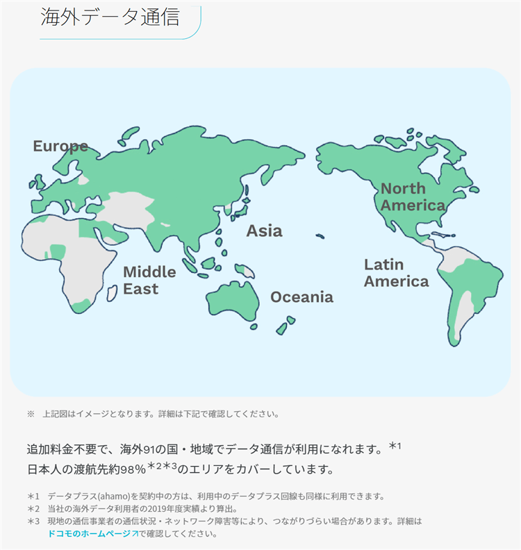ahamoは海外旅行時でも特に設定をいじることなく、そのままデータ通信を利用できるようになっています。