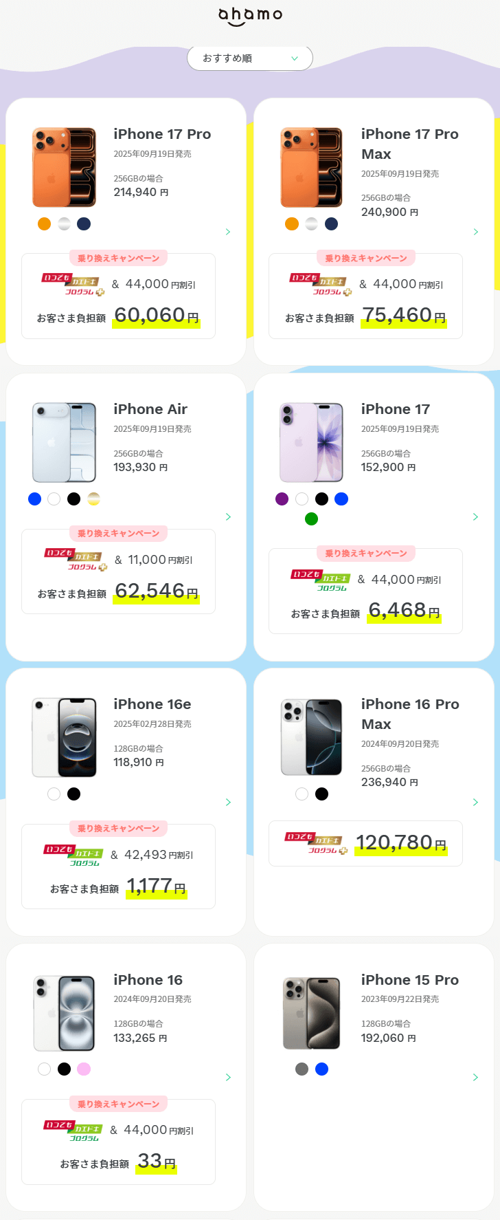 今回の激安iPhone17利用ですがahamoが前提となります。