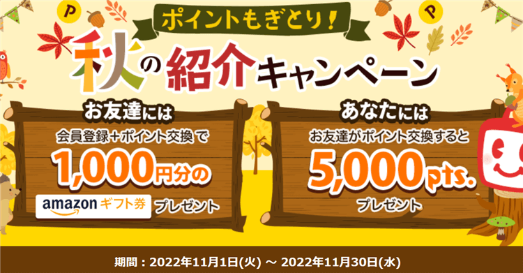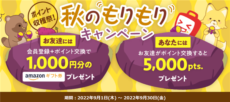 登録月の翌月末までに、ポイント交換すると1000円分のAmazonギフト券をプレゼント!