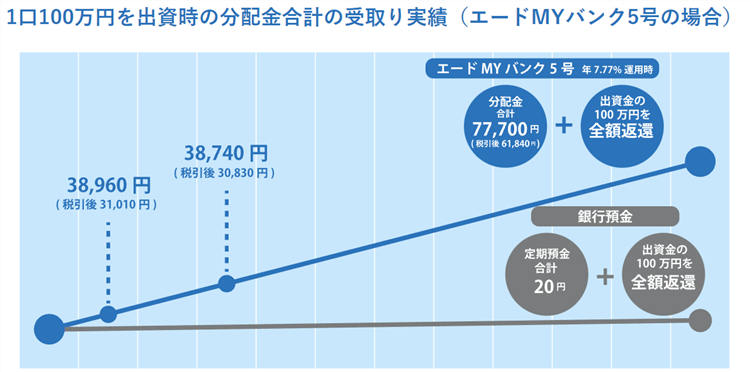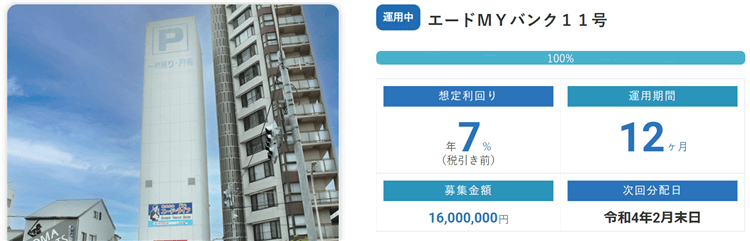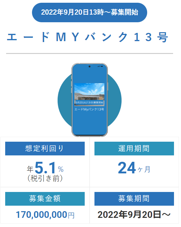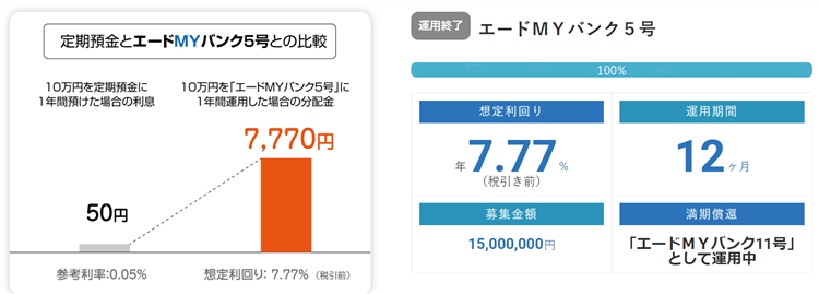 例えば運用終了したエードMYバンク5号の案件はこのよう条件です。