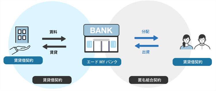 これは複数の投資家から出資を募り、その資金をエードMYバンクが運用して不動産を取得し、その賃料収益を出資額に応じて支払うというものです。