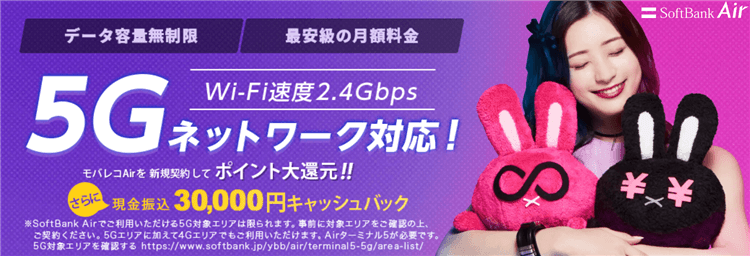 手軽にインターネット!モバレコAir新規利用で37,000円相当で最高潮!1年利用で3万円キャッシュバック!!解除料も3,300円に!