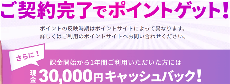 今なら現金30,000円キャッシュバックキャンペーンもある!