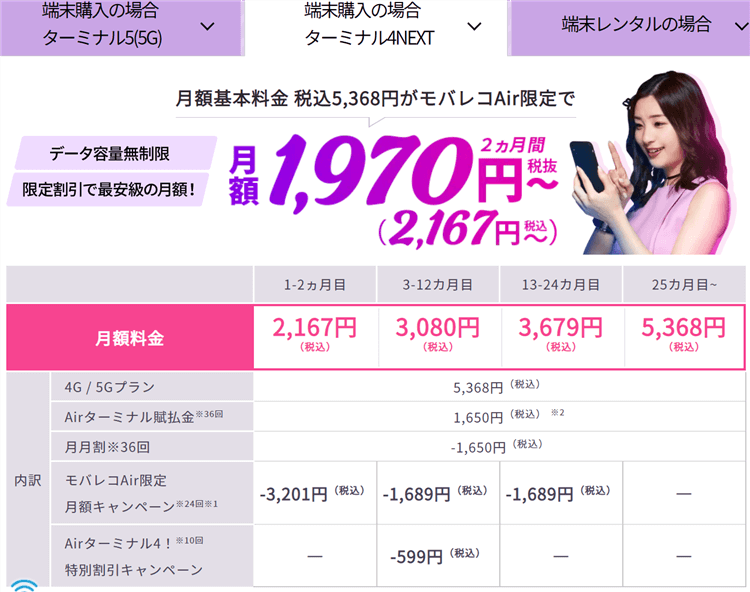 モバレコAirは端末購入契約と端末レンタルがある!モッピー利用なら端末レンタルは対象外