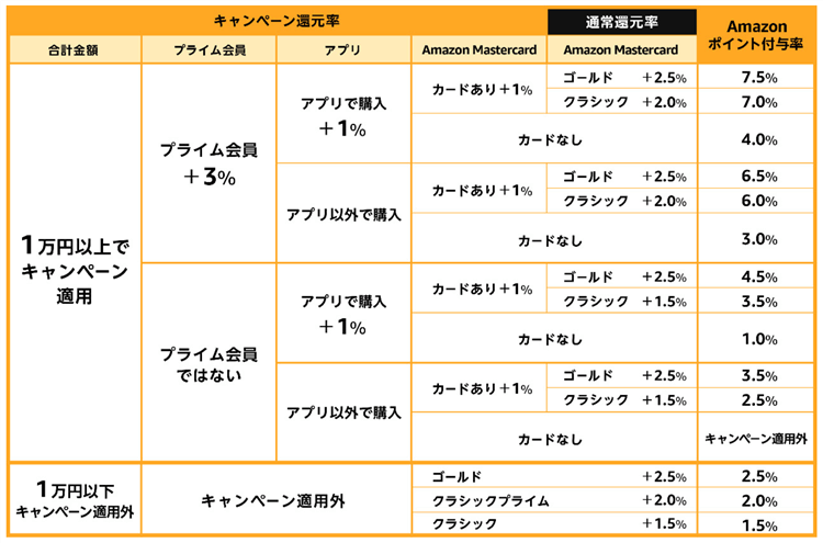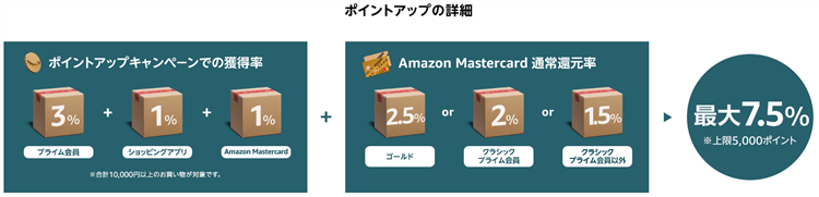 ここで3番目の「Amazon Mastercard」ですが、カードの種類によって更に追加ポイント還元率が変わってきます。