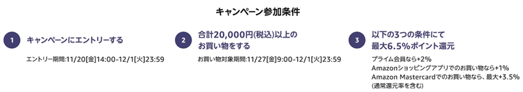 アマゾンブラックフライデー&サイバーマンデー最大6.5%還元がヤバい!最大10,000ポイントが貰える!【要エントリー】