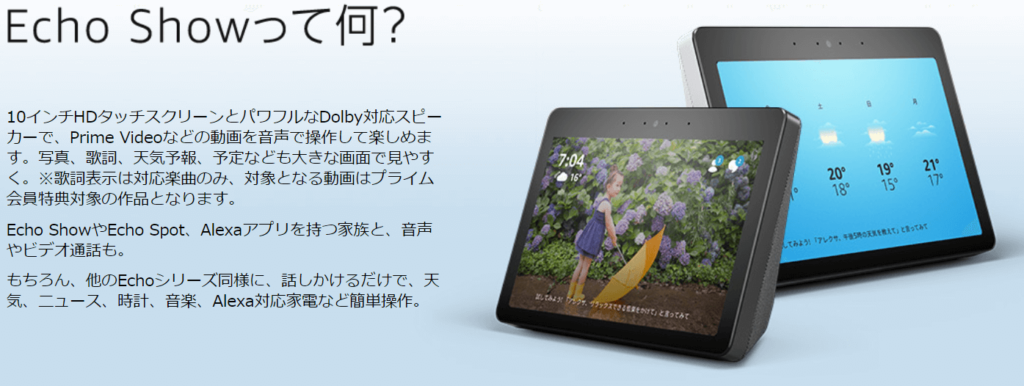 簡単に説明をすると、今までのアマゾンエコーに大きな液晶画面が付いたということです。