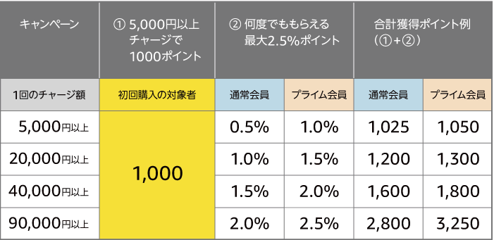 そしてプライム会員であれば、最大2.5%還元を受けることができます。