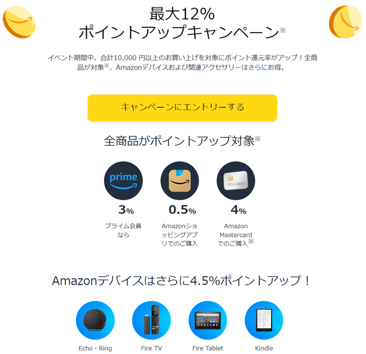 アマゾンプライムデー最大12%還元!最大10,000ポイントが貰える!【要エントリー】