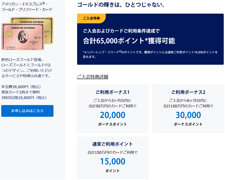 | カード名 | アメリカン・エキスプレス®・ゴールド・プリファード・カード |