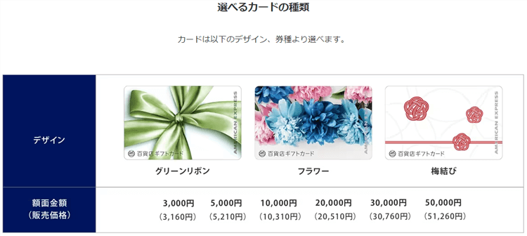 アメックス百貨店ギフトカードの種類は?デザイン3種、金額6種類のラインナップ!