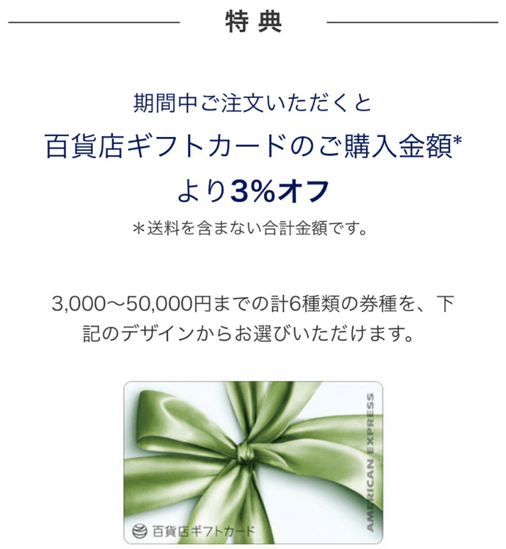2024/5最新!3%オフでアメックス百貨店ギフトが購入できるキャンペーン!【終了】