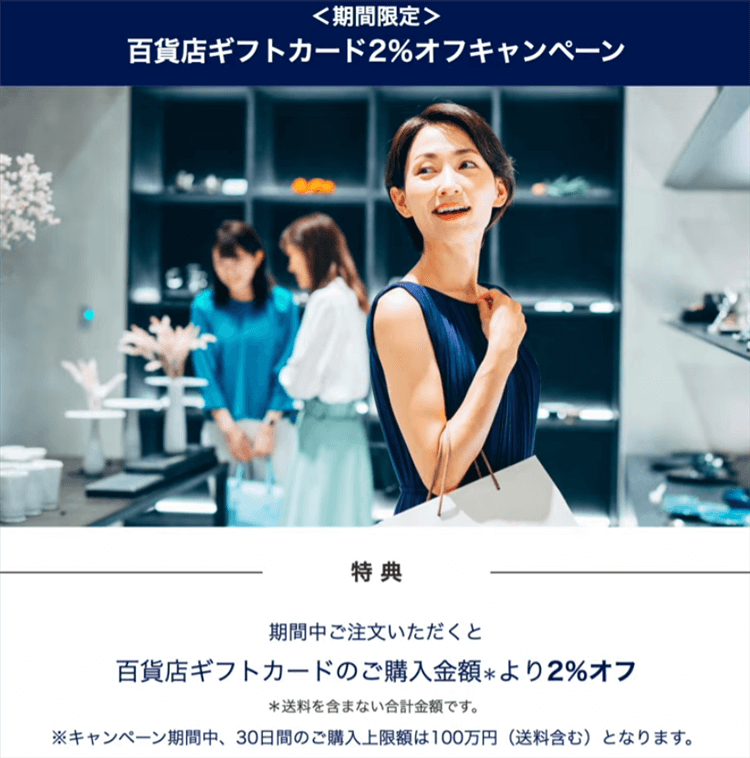 更に今なら2%OFFで百貨店ギフトカードが購入可能です!