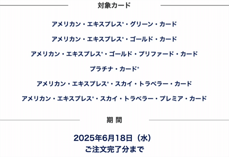 実は公式サイトのどこにも載っておりませんが、アメックスカード保有者にはメールにてお知らせが入っています。