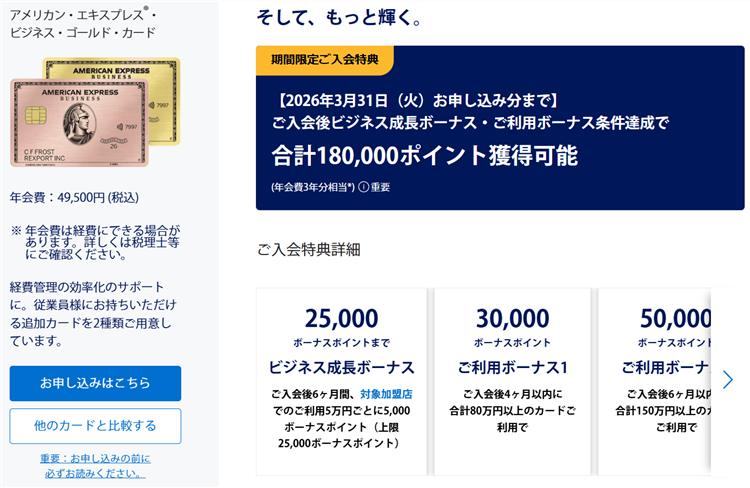 2026年限定のアメックスビジネスゴールドの新規入会キャンペーンで18万ポイントをGETしよう!3月31日まで!