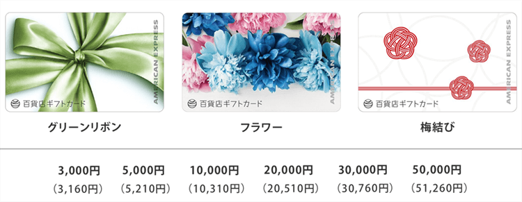 アメックスでは百貨店で利用ができるギフトカードがあります。