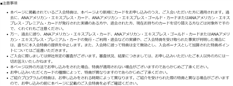 ANAアメックスキャンペーンの注意事項について