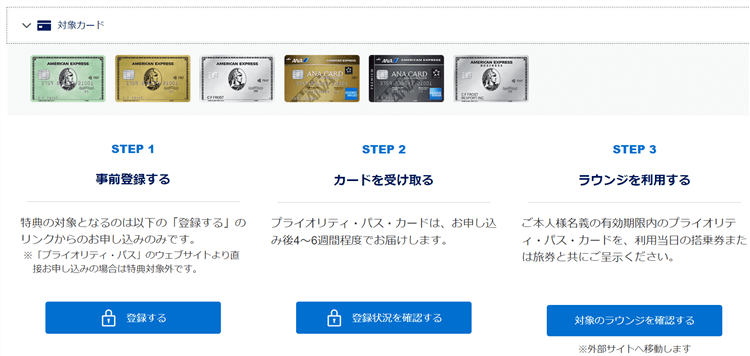 そしてANAアメックスゴールドを所持している方であれば、このプライオリティパスが無料で利用が出来るようになります。