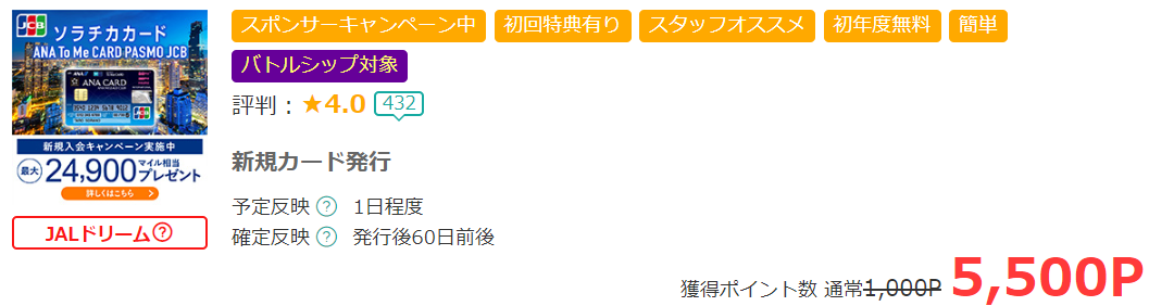 カードを発行するだけで5,500P(5,500円相当)のポイントが貰えちゃいますよ!!