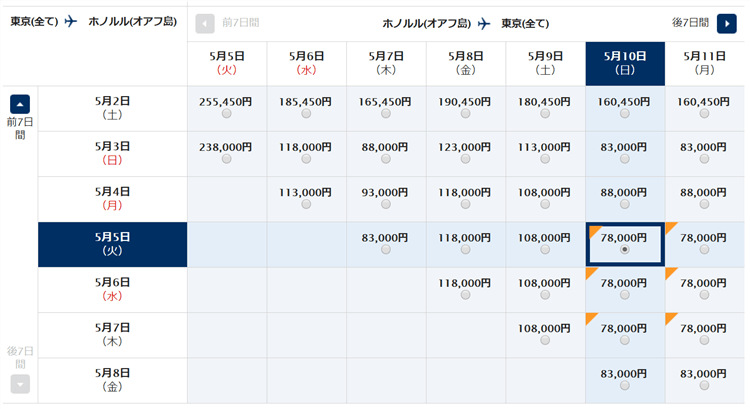 ANAで現金でハワイに行こうと思うと78,000円から!!