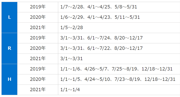 - H:ハイシーズン