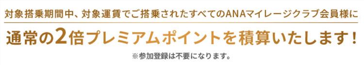 ANA国内線・国際線プレミアムポイント2倍キャンペーン!!