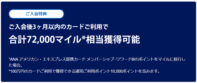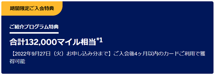 | 3か月以内に25万円利用 | 10,000マイル | 4か月以内に50万円利用 | 30,000マイル |