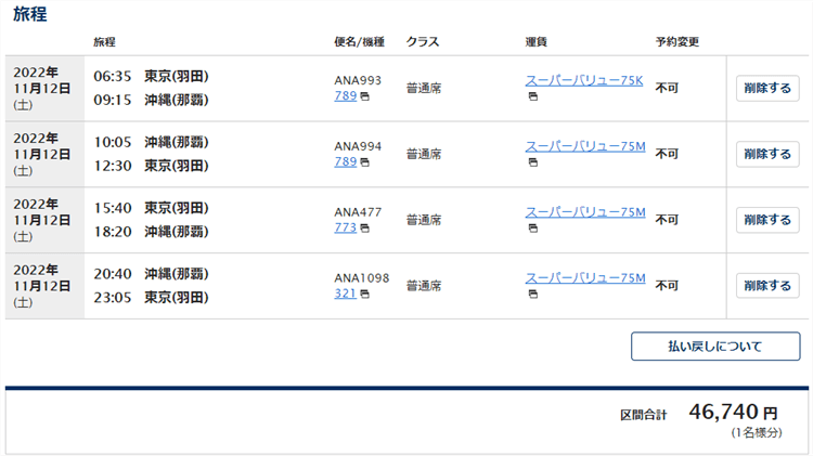 都内からだったら、「羽田-那覇」の往復が王道です。