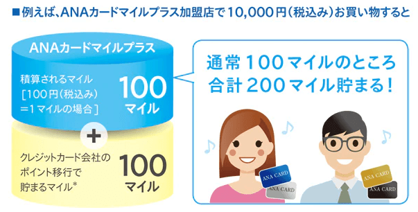 ANA提携店で100円=1ANAマイルか200円1ANAマイルが貯まる!