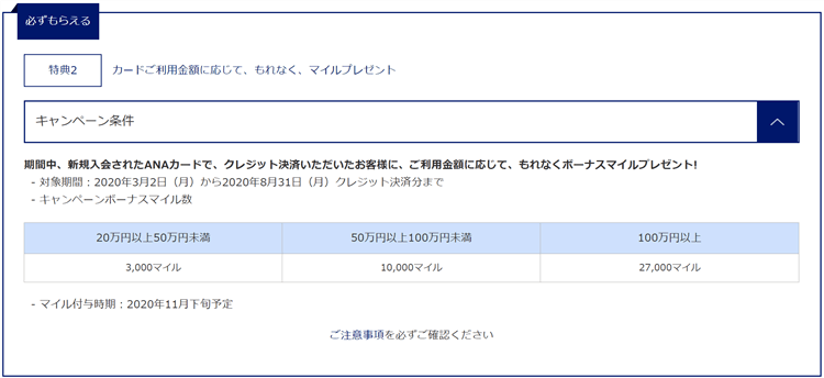 【特典2】新規入会されたANAカードでご利用金額に応じて、もれなくボーナスマイルプレゼント!
