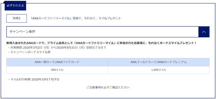 こちらは「ANAカードファミリーマイル」に登録することでマイルが貰えます。