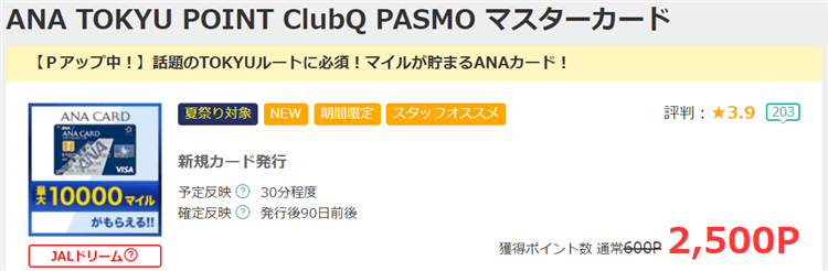 ※現在「ANA TOKYU POINT ClubQ PASMO マスターカード」はポイントサイトでは取り扱いがありませんが、いつか復活するかもしれません!