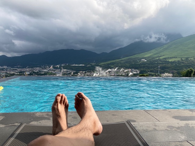 別府の街並み、そして別府湾まで見ることができて、いつまでも入っていたいプールでした!