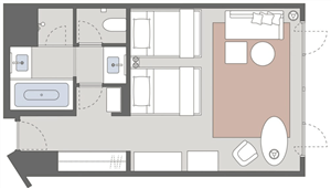 プレミアムベイルーム![]() | ベイウィングの6~7階 面積 43.2㎡ ベッドサイズ:1350mm×2030mm×330mm 定員 1~4名 客室数 22室(全室禁煙)・3名様以上の場合、エキストラベットをご利用いただきます。 ・4名様ご利用の場合、お部屋は手狭になります。 |