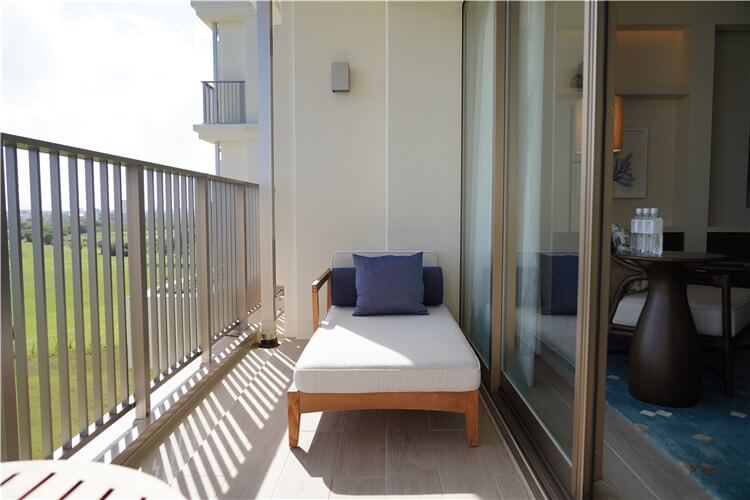 ベランダにはミニテーブルとチェア、そしてカウチソファーがあります。