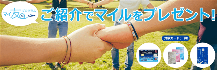 マイ友プログラムというのは、ANAマイルを貯めたい方が対象カードに入会するときに紹介を受けてマイルが貰えるプログラムのことです。