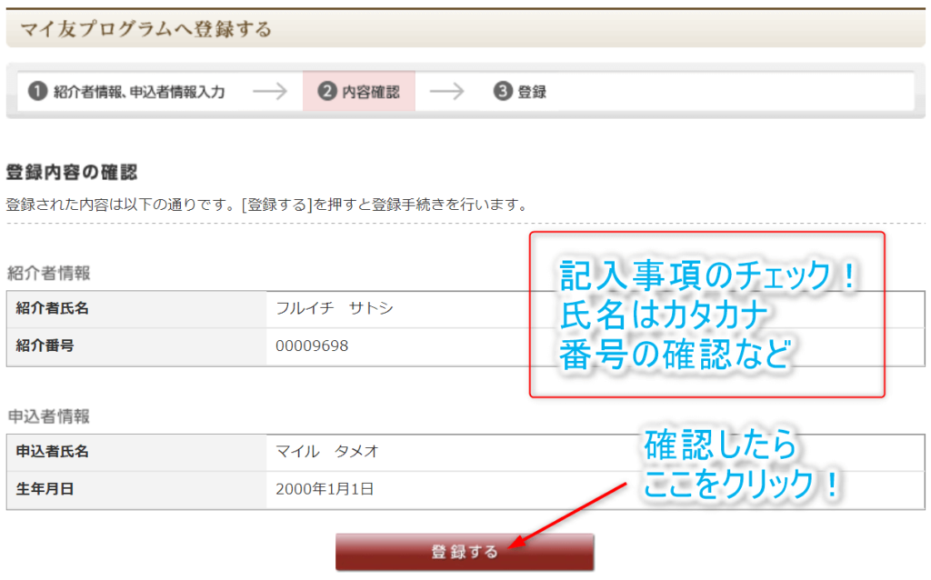 こちらで再度、紹介者情報、申込者情報をチェックしましょう!