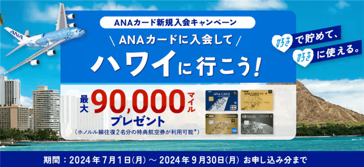 | ANAカードキャンペーン(カード利用対象期間:2024年7月1日(月)~2024年11月30日(土))(12か月期限) | |||