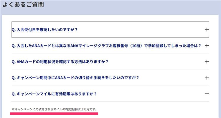 キャンペーンで貰えるマイルの一部は通常のマイルの有効期限よりも短いものがあります。