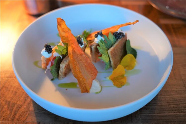 - ズワイガニとセロリのトーストサンド サワークリーム キャビア